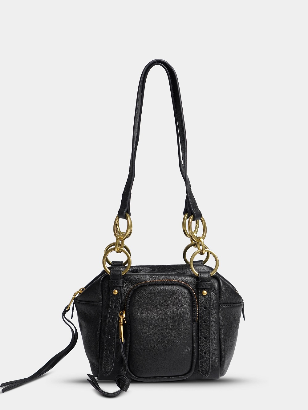 Сумка изготовлена из натуральной кожи, что гарантирует долговечность и надежность. Черный цвет придает изделию элегантный и современный вид.